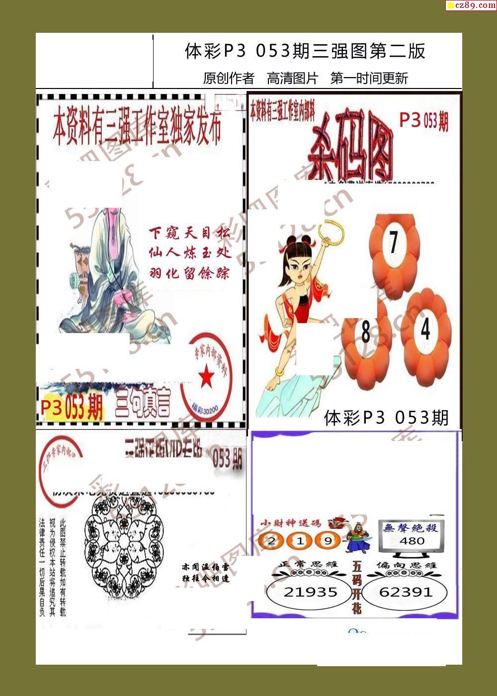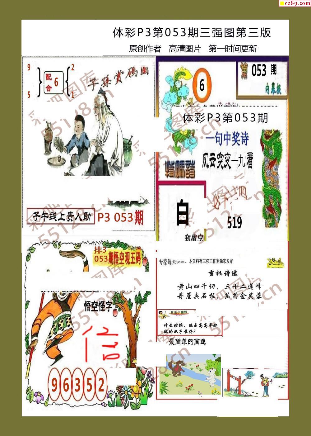 > 三强图系列053期体彩p3图谜